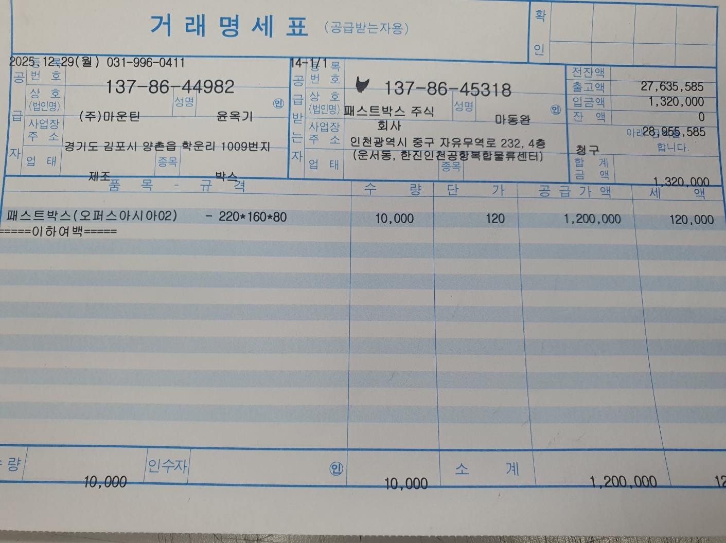 검수 상태입니다. 사진 첨부 후 완료를 누르세요.